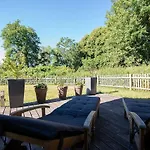Vous pourrez utiliser une cafetière/théière, fournis dans un coin repas extérieur. Vous trouverez également un réfrigérateur et un four pour préparer votre propre repas.